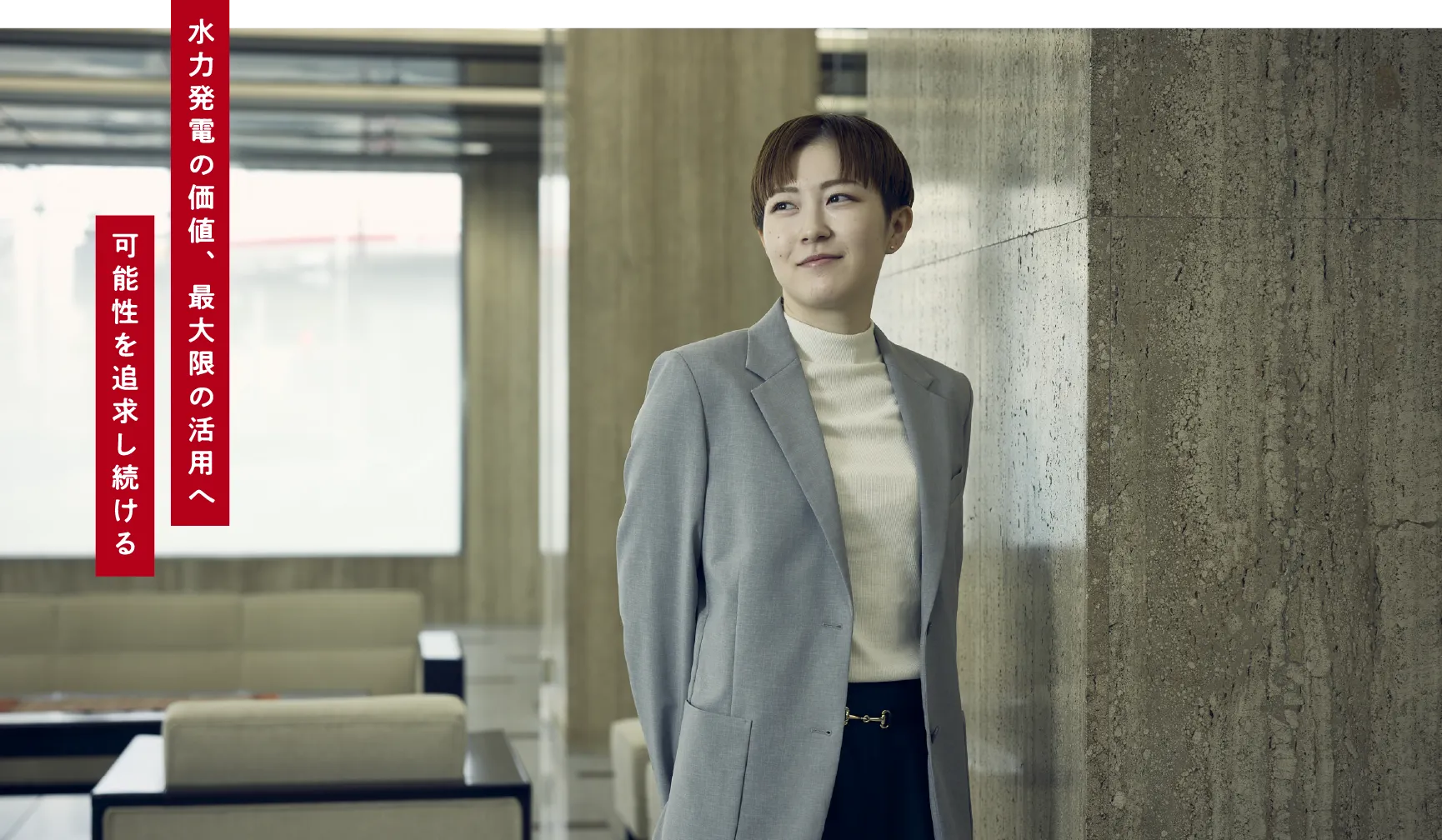 「水力発電のVPPAは当社での前例がない上、多くのお客さまが関わるプロジェクトであったため、何が最適な選択なのか非常に頭を悩ませました。電力販売会社とのやり取りの中では、環境価値を購入いただくお客さまの先にも多くの関係者がいることを知り、各所との交渉・調整がいかに大切か改めて実感しました。事実や制度の理解度を高めるほか、リスクを的確に感知し、迅速に判断することを意識して取り組みました。本プロジェクトを通して、視野が広がり、さまざまな立場や視点から物事を考えられるようになったと感じています。」