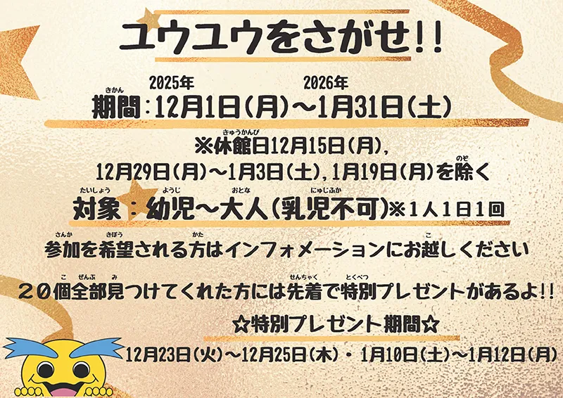 イベント イベント・スポーツ・CM: すべて イベント キャンペーン スポーツ CM・動画 その他 2025年11月20日浜岡原子力館静岡県中部電力 12月・1月ミニイベント 12月・1月ミニイベントポスター[PDF:4,579 KB] 記事をシェアする 開催期間・時間 2025年12月1日(月曜日)~2026年1月31日(土曜日) 9時~17時まで (注)休館日12月15日(月曜日)、12月29日(月曜日)~1月3日(土曜日)、1月19日(月曜日)を除く 告知内容 12月・1月のミニイベントを実施いたします。 詳しい内容はポスターをご覧ください。 お問い合わせ先 中部電力浜岡原子力館 12月・1月ミニイベントポスター[PDF:4,579 KB] イベント種別一覧 でんきの科学館 浜岡原子力館 メグラスガーデン ナゴヤ その他展示館 見学会 セミナー・講演会 その他 イベント一覧へ 最新のイベント 2025年11月20日 【浜岡原子力館】12月・1月ミニイベント 開催期間 2025年12月1日(月曜日)~2026年1月31日(土曜日) イベント 中部電力 2025年11月18日 【でんきの科学館】12月イベント「クリスマス音楽会~ハンドベルで彩るひととき~」 開催期間 2025年12月20日(土曜日)・12月21日(日曜日) イベント 中部電力 2025年10月23日 【浜岡原子力館】11月ミニイベント「クイズラリー」 開催期間 2025年11月01日~2025年11月30日 イベント 中部電力 イベント一覧へ