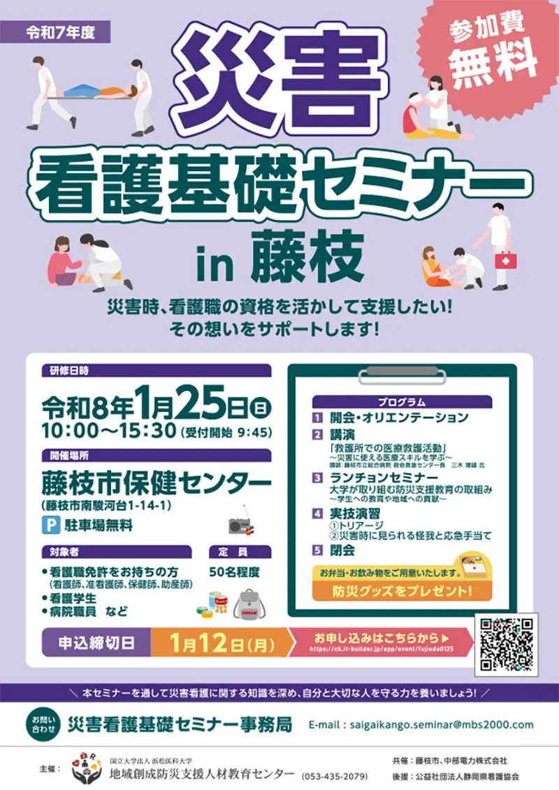 医療従事者の皆さん!「災害看護基礎セミナーin藤枝」に参加しませんか?